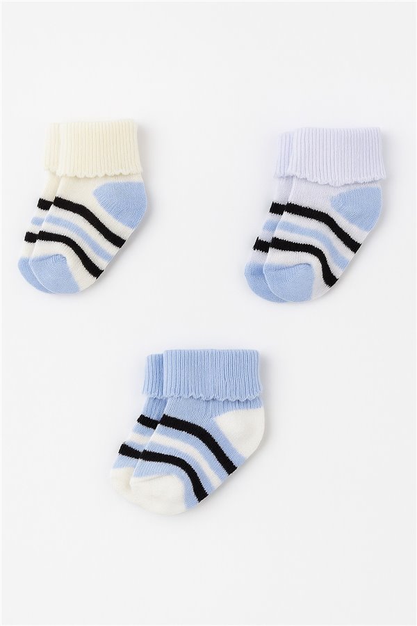 İcon Baby 0-3 Ay Penye Bebek Çorap Çizgili Mavi