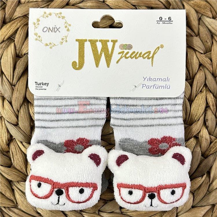 Jw Baby 0-6 Ay Penye Oyuncaklı Çorap Ayıcıklı Gri