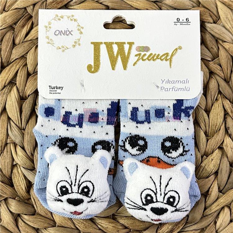 Jw Baby 0-6 Ay Penye Oyuncaklı Çorap Kedi Mavi