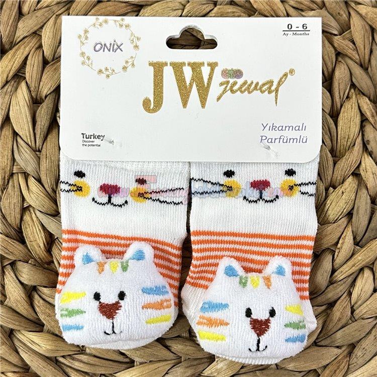 Jw Baby 0-6 Ay Penye Oyuncaklı Çorap Kedi Turuncu