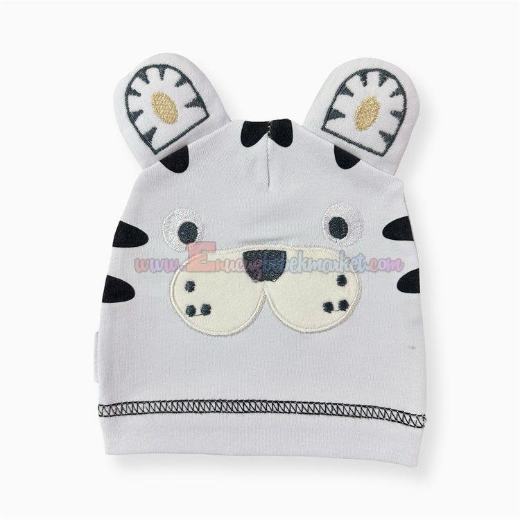Kayra 6-12 Ay Kaplan Figürlü Penye Bere Beyaz