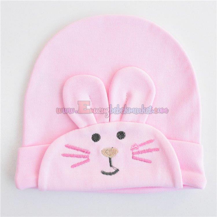 Kayra Baby 0-3-6 Ay Tavşan Nakışlı Bebek Bere Pembe