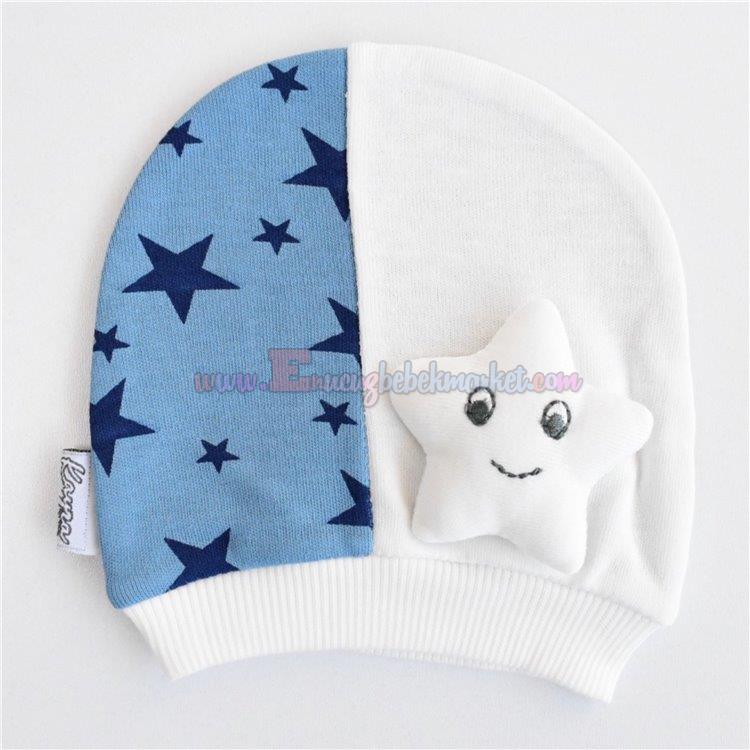 Kayra Baby 0-6 Ay Yıldız Figürlü Penye Bere Mavi
