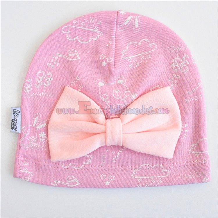 Kayra Baby 3-6-9 Ay Fiyonklu Bulut Desenli Penye Bere Gül Kurusu