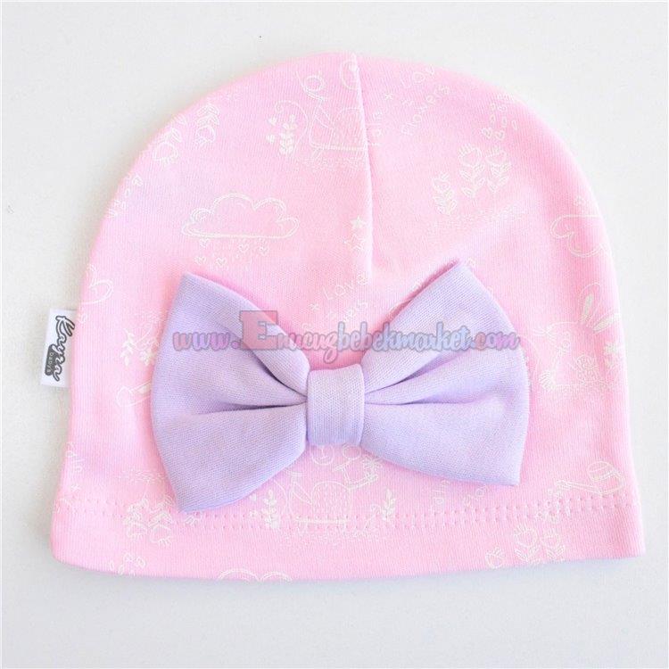 Kayra Baby 3-6-9 Ay Fiyonklu Bulut Desenli Penye Bere Pembe