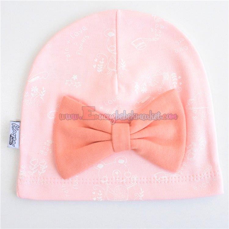 Kayra Baby 3-6-9 Ay Fiyonklu Bulut Desenli Penye Bere Somon