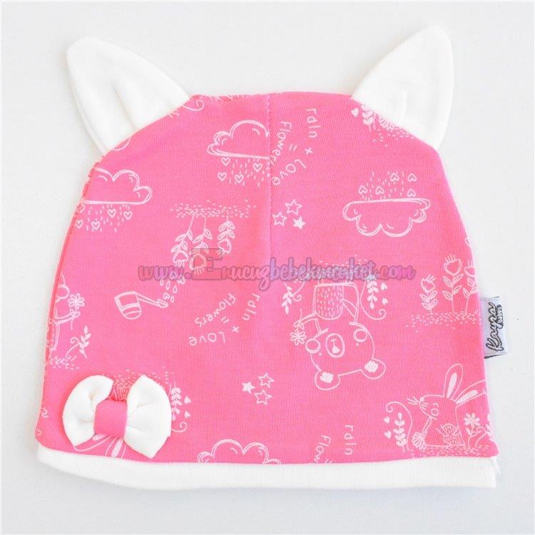 Kayra Baby 3-6-9 Ay Fiyonklu Flowers Desenli Penye Bere Pembe