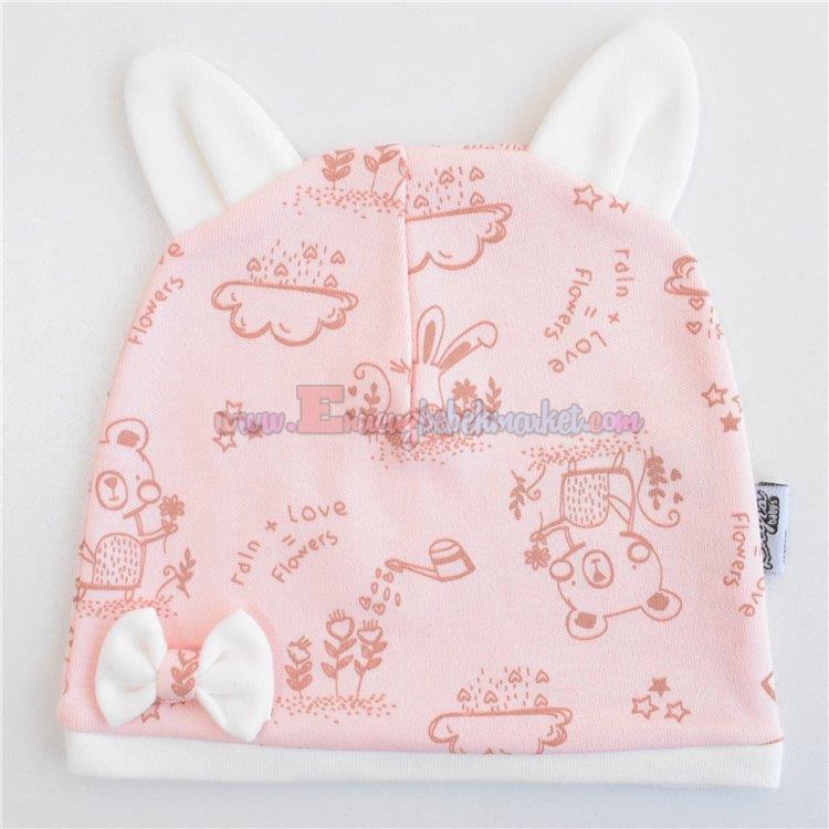 Kayra Baby 3-6-9 Ay Fiyonklu Flowers Desenli Penye Bere Pudra