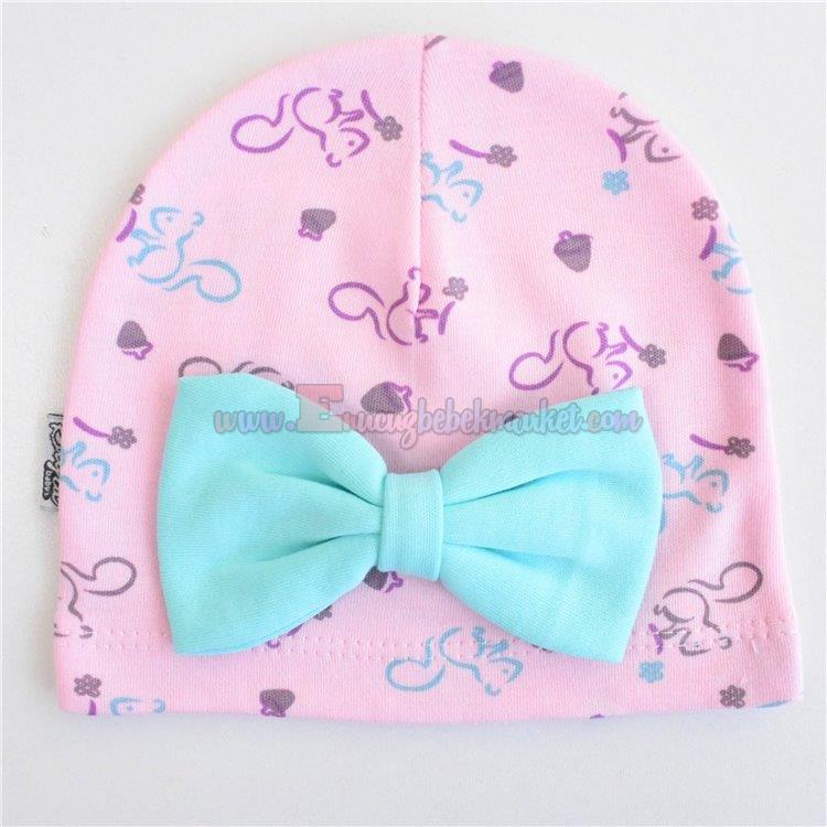 Kayra Baby 3-6-9 Ay Fiyonklu Sincap Desenli Penye Bere Pembe