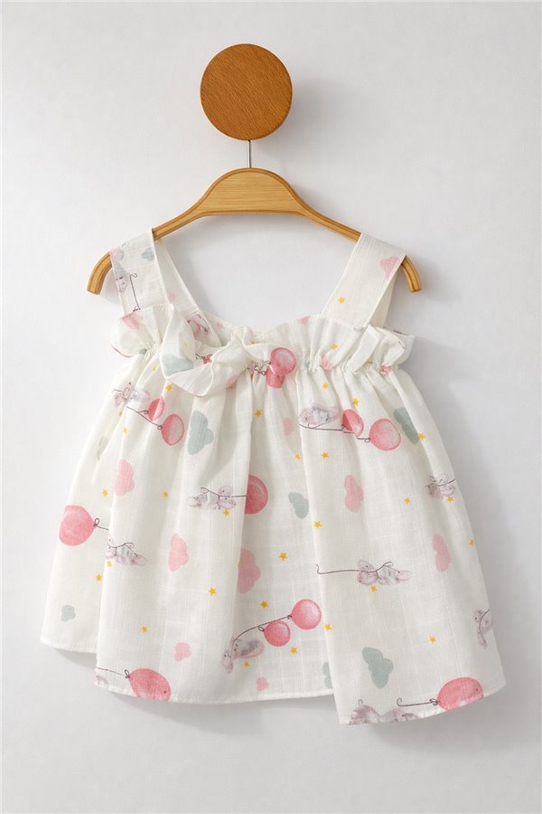 Kız Bebek 3-18 Ay Balonlu Müslin Elbise Pembe