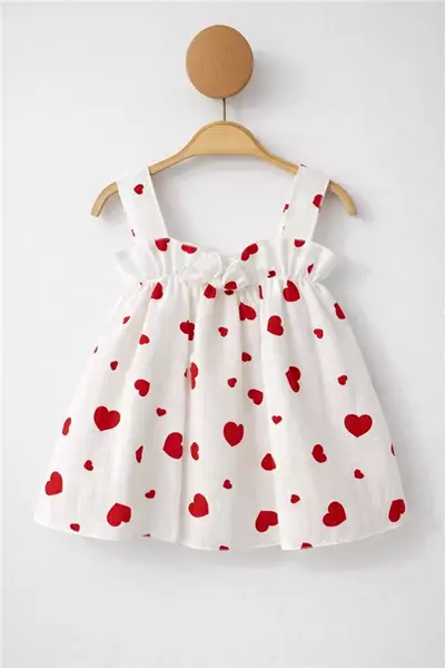 Kız Bebek 3-18 Ay Büyük Kalpli Müslin Elbise Kırmızı