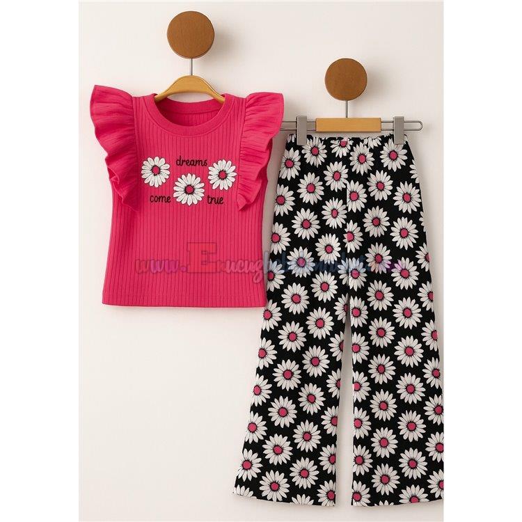 Nazar 3-4-5-6 Yaş Çiçekli Kız Çocuk Takım Pembe