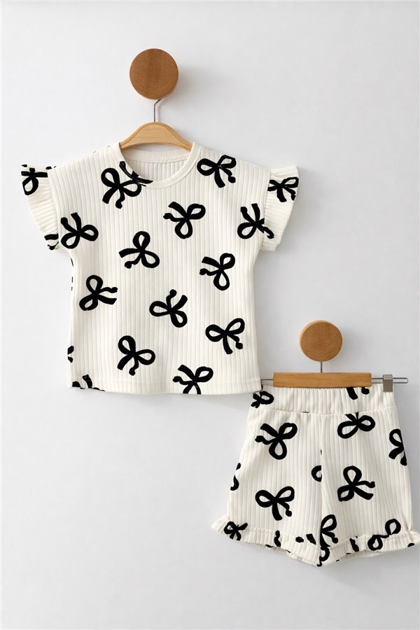 Kız Çocuk 4-7 Yaş Fiyonklu Fırfırlı Takım Siyah Krem