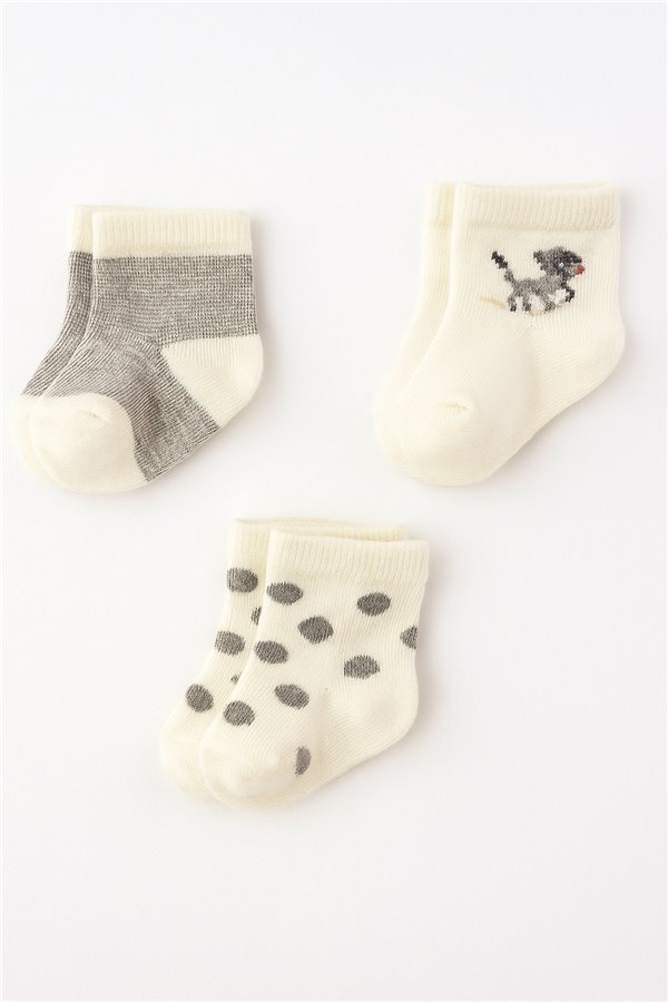 Kral Baby 0-3 Ay Penye Bebek Çorap Çizgili Gri Krem