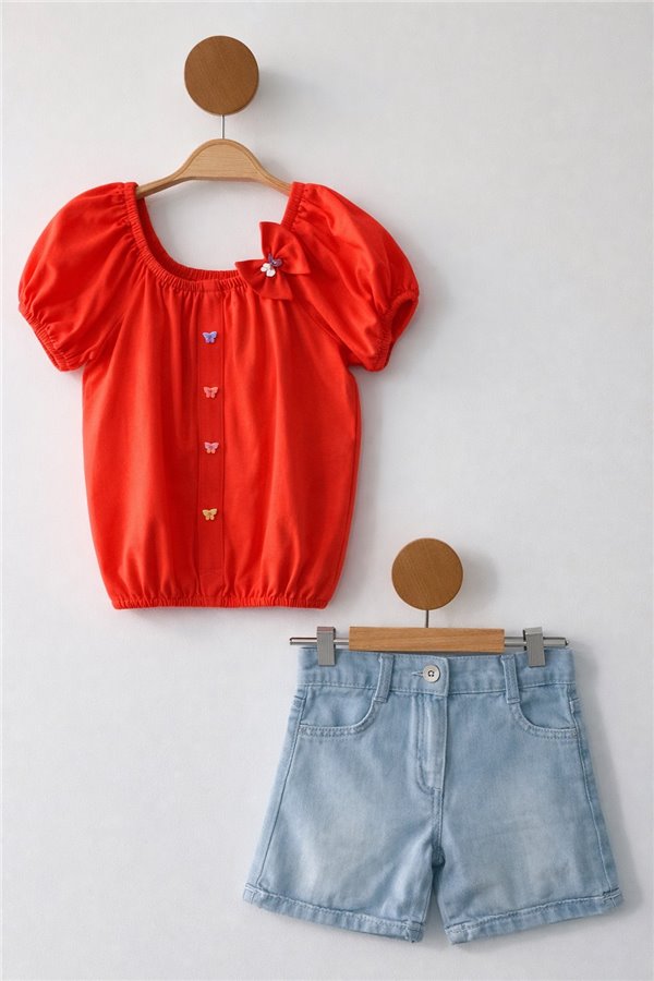 Yazlık Kız Çocuk Üst ve Kot Şort 2 Parçalı Set