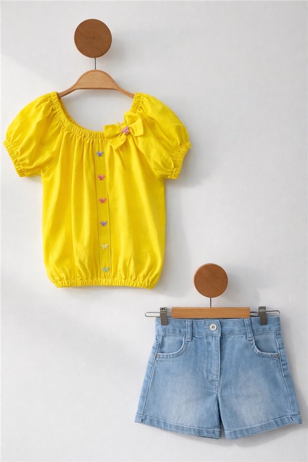 La Bella 1-5 Yaş Kot Şortlu Kız Çocuk Takım 2521 Sarı