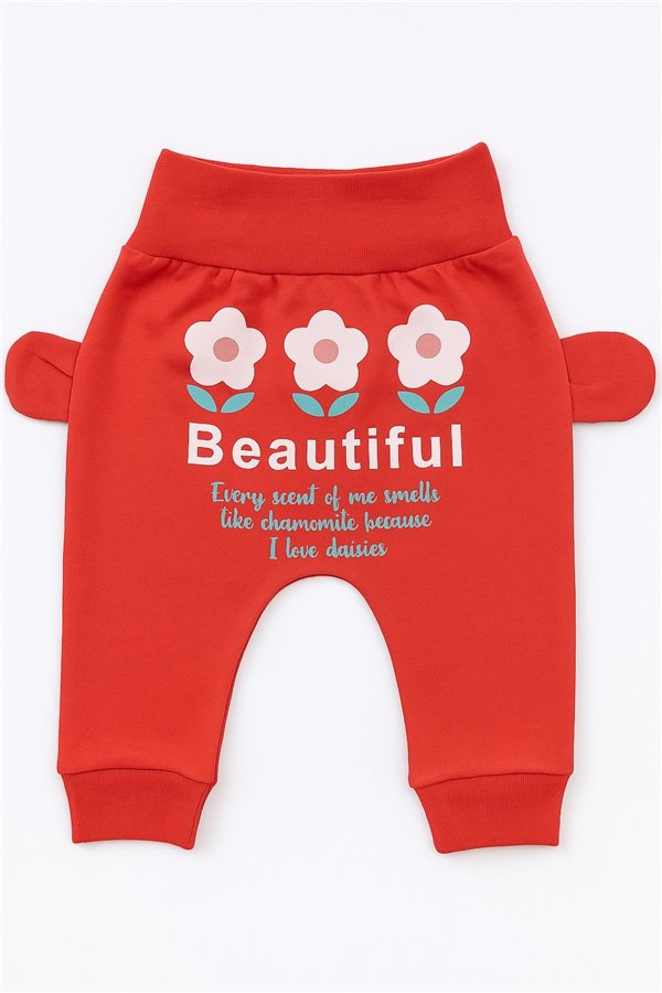 Mc Kids 0-3-6-9 Ay Penye Bebek Pantolon Çiçekli Nar Çiçeği