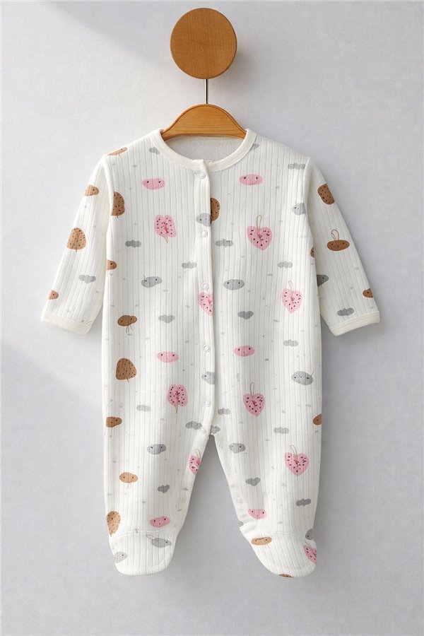 Mıdırık 0-3-6-9 Ay Yapraklı Patikli Penye Bebek Tulum Krem