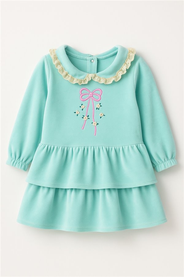 Million 6-9-12-18 Ay Kadife Kız Bebek Elbise Mint Yeşili