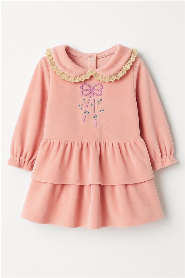 Million 6-9-12-18 Ay Kadife Kız Bebek Elbise Somon