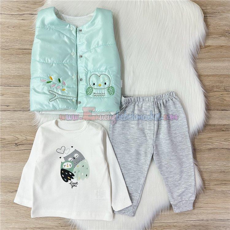 Baby 6-24 Ay Baykuş Detaylı Şişme Yelekli Bebek Takım Mint Yeşili
