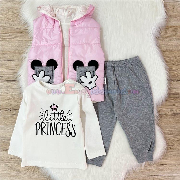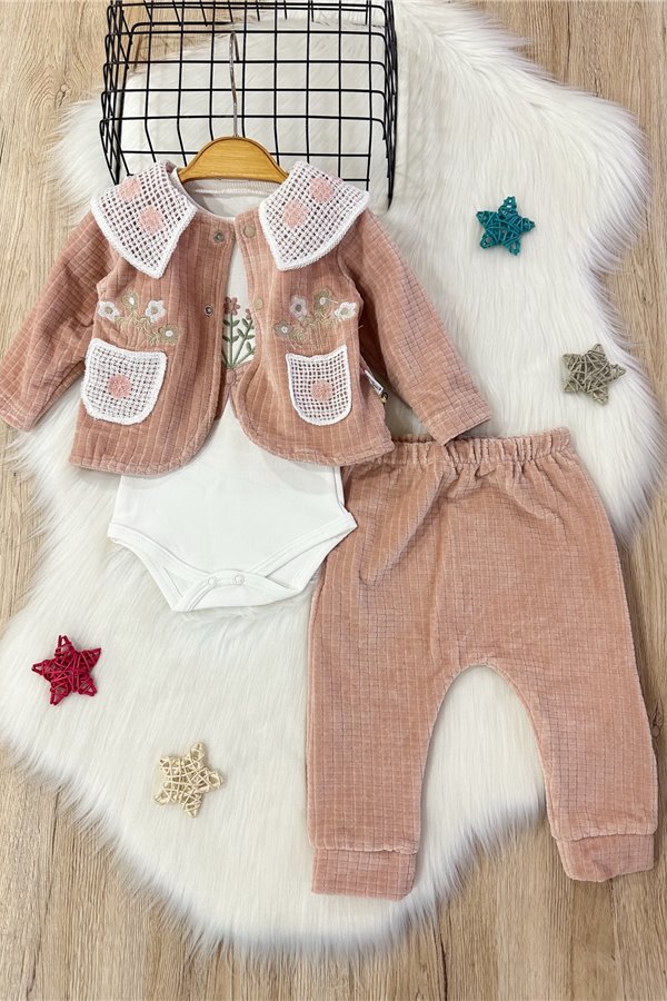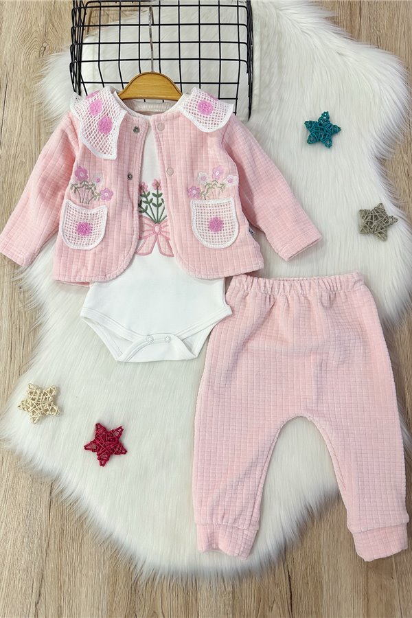 Mini Pakel 0-12 Ay Kışlık 3'Lü Kız Bebek Takım Pudra
