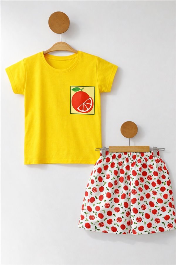 3-7 Yaş Meyve Baskılı Kız Çocuk Takım Sarı