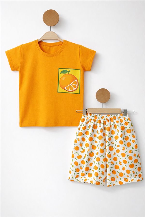 3-7 Yaş Portakal Baskılı Kız Çocuk Takım Turuncu