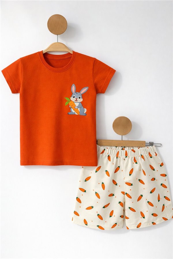 3-7 Yaş Tavşan Baskılı Kız Çocuk Takım Turuncu