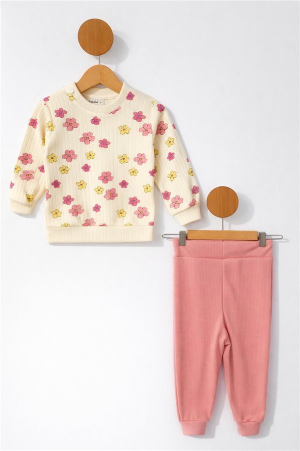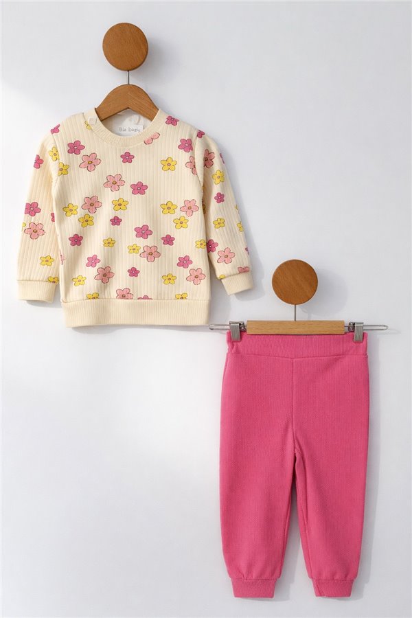 Nurhas 0-3-6 Ay Çiçekli Penye Bebek Takım 6039 Pembe