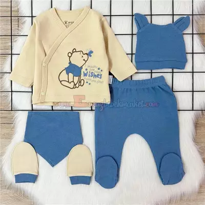 Minicayzen 0-3 Ay 5 Parça Zıbın Takım Naturel Waffle İndigo