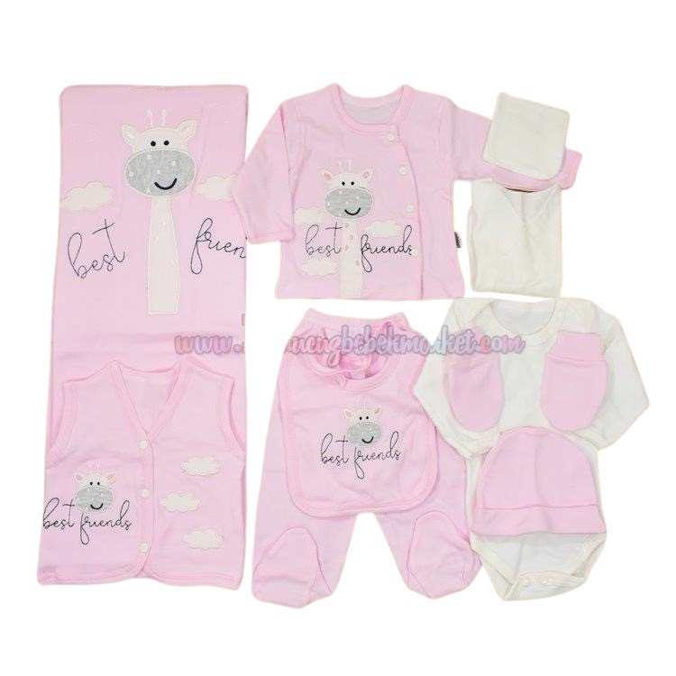 Miniel 0-3 Ay 10 Parça Bebek Zıbın Seti Bulutlu İnek Pembe