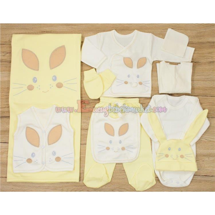 Miniel 0-3 Ay 10 Parça Bebek Zıbın Seti Tavşan Sarı