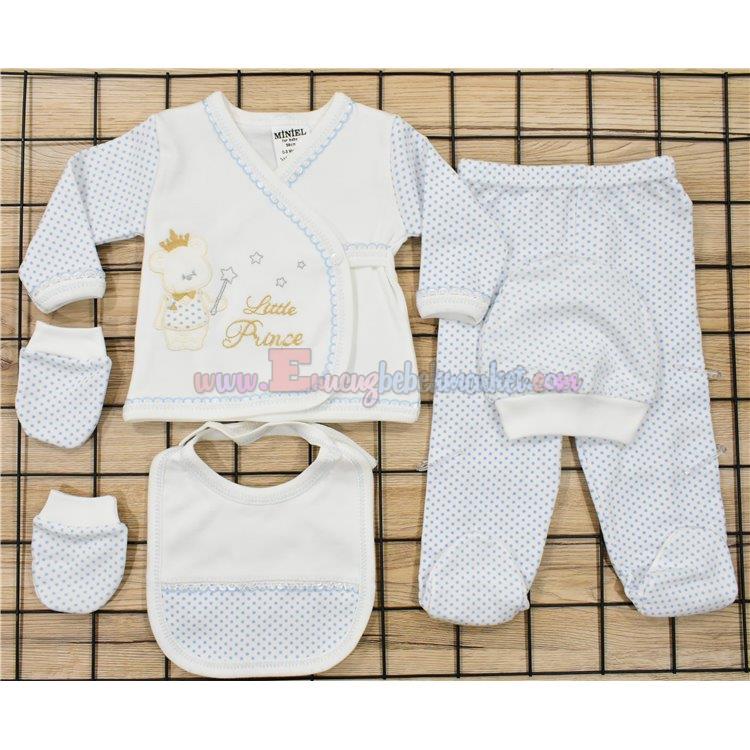 Miniel 0-3 Ay 5'Li Zıbın Takım Little Prince Puanlı Mavi Krem