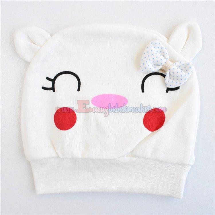Minitoy 0-3-6 Ay Figürlü Fiyonklu Penye Bere Krem