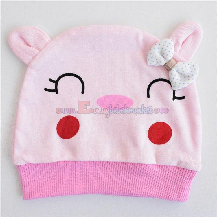 Minitoy 0-3-6 Ay Figürlü Fiyonklu Penye Bere Pembe