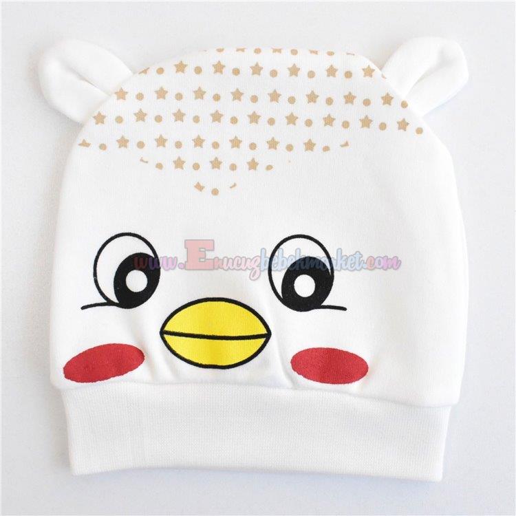 Minitoy 0-3-6 Ay Figürlü Kulaklı Penye Bere Krem