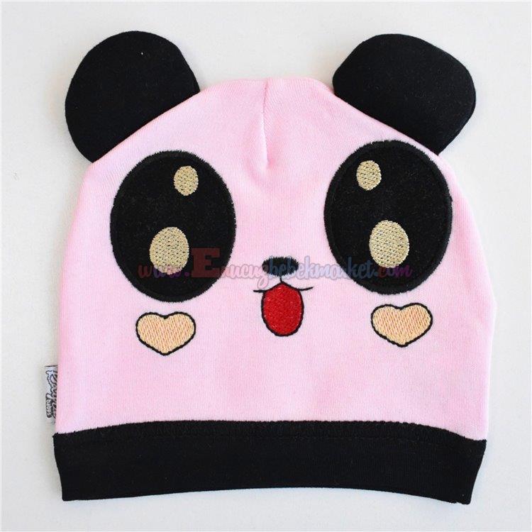 Minitoy 0-3-6 Ay Panda Figürlü Penye Bere Pembe