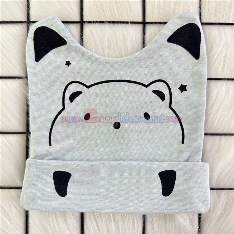 Minitoy 0-9 Ay Patili Ayı Baskılı Penye Bebek Bere Açık Yeşil