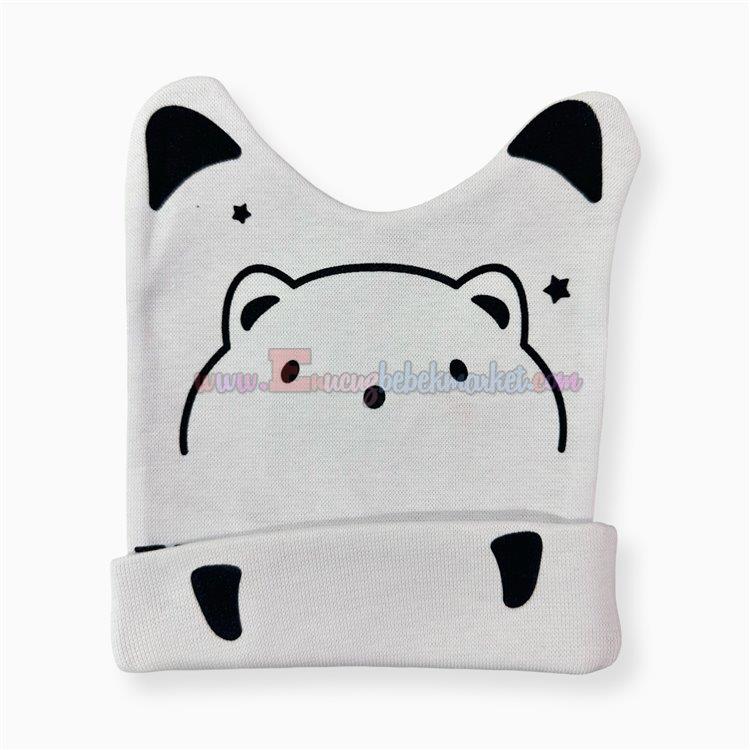Minitoy 0-9 Ay Patili Ayı Baskılı Penye Bebek Bere Beyaz