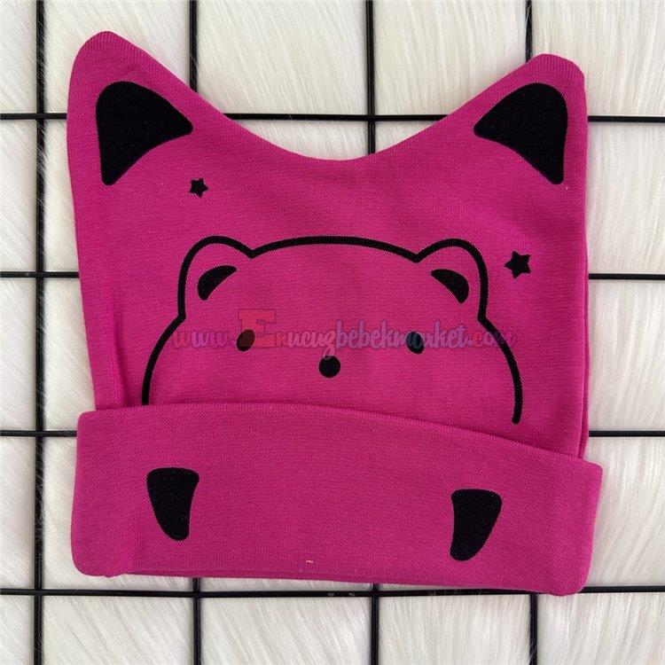 Minitoy 0-9 Ay Patili Ayı Baskılı Penye Bebek Bere Fuşya