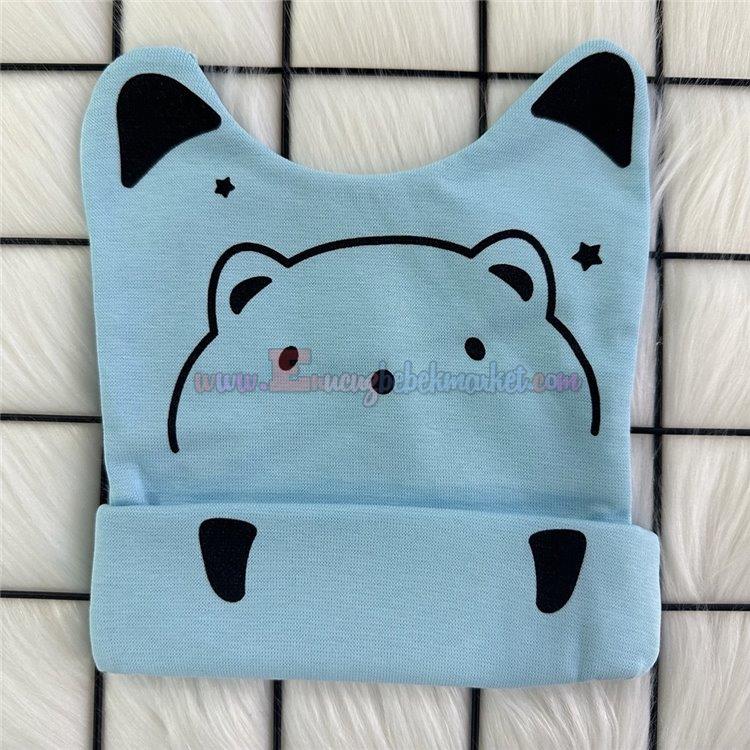 Minitoy 0-9 Ay Patili Ayı Baskılı Penye Bebek Bere Mavi