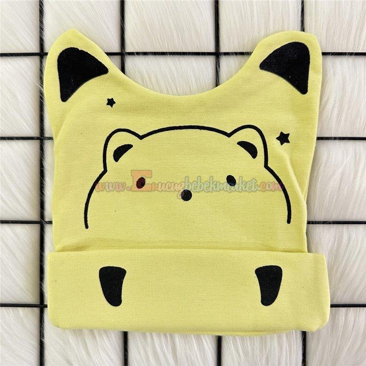 Minitoy 0-9 Ay Patili Ayı Baskılı Penye Bebek Bere Sarı