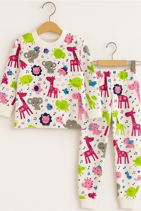 1-2-3 Yaş Bebek Pijama Takım Animal Desenli Pembe
