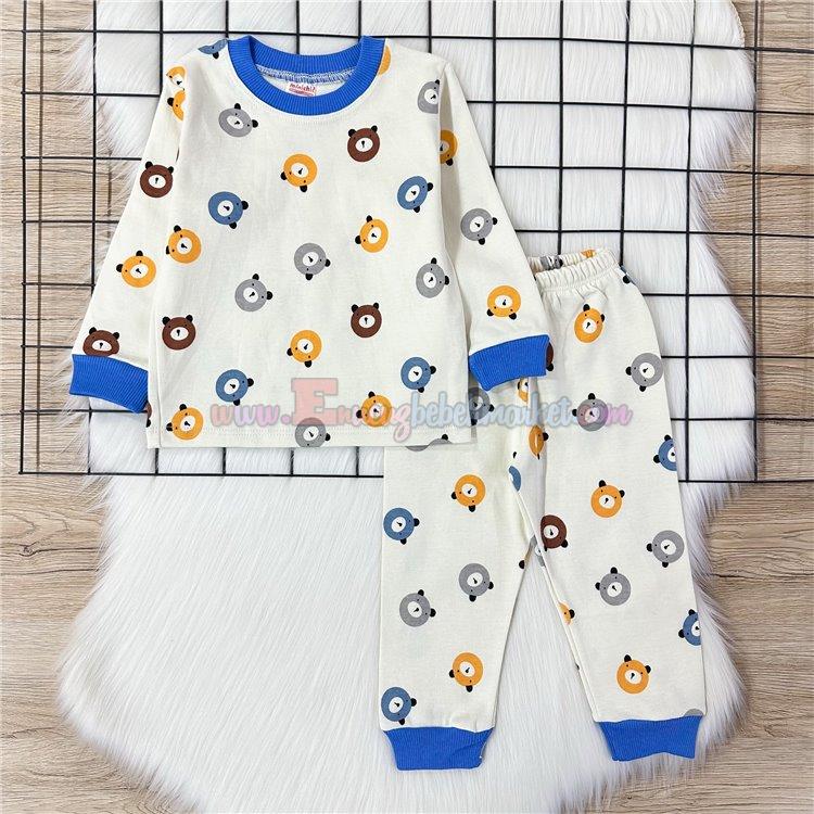 Minichic 9-36 Ay Bear Baskılı Penye Pijama Takım Mavi