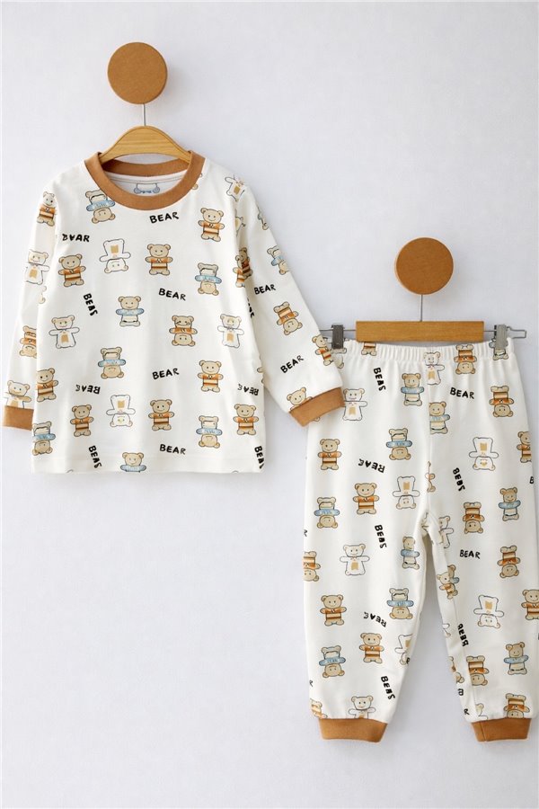 Miniworld 6-24 Ay Bear Baskılı Bebek Pijama Takım Kahverengi