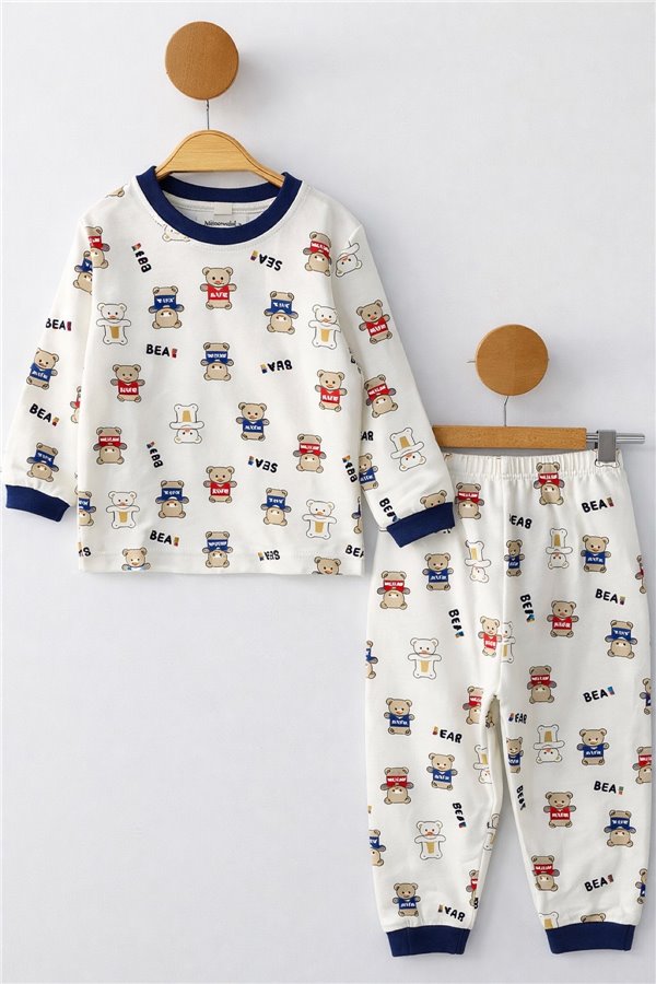 Miniworld 6-24 Ay Bear Baskılı Bebek Pijama Takım Lacivert