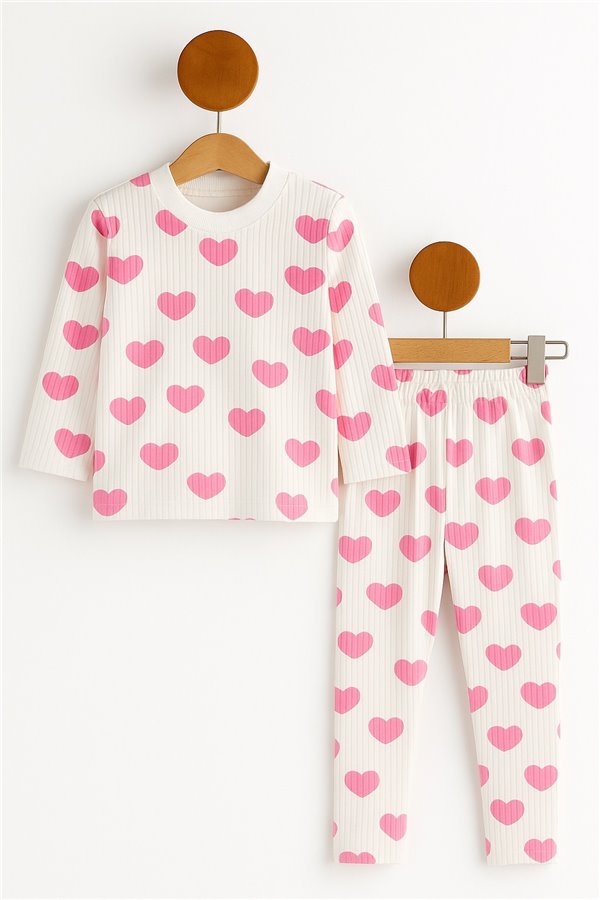 Özlv 9-12-18-24 Ay Kalp Baskılı Bebek Pijama Takım Pembe