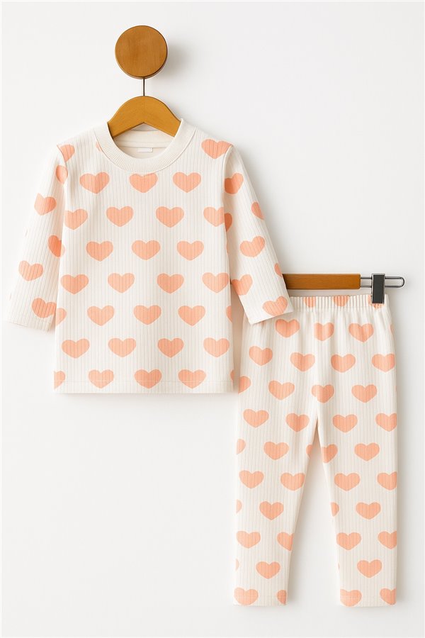 Özlv 9-12-18-24 Ay Kalp Baskılı Bebek Pijama Takım Somon