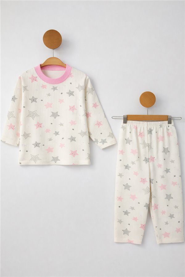 Özlv 9-12-18-24 Ay Yıldız Desenli Bebek Pijama Takım Pembe